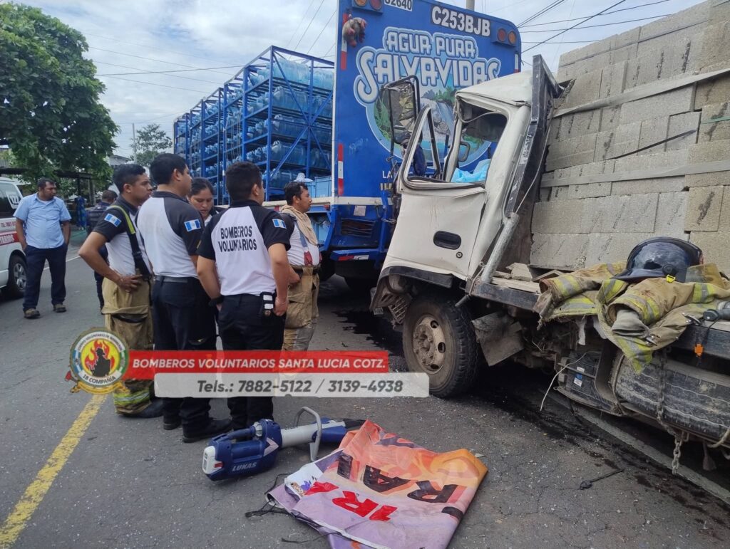 De acuerdo con la información recabada, el conductor del camión repartidor de agua, Héctor José Contreras Alonzo, no sufrió heridas. Sin embargo, su acompañante, Hilder Alfonso Gómez Cabrera, de 24 años, presentó una fractura en la muñeca y un fuerte golpe en la cabeza. Elementos de los cuerpos de socorro le brindaron atención prehospitalaria en el lugar y posteriormente lo trasladaron al Instituto Guatemalteco de Seguridad Social (IGSS) de la localidad.
