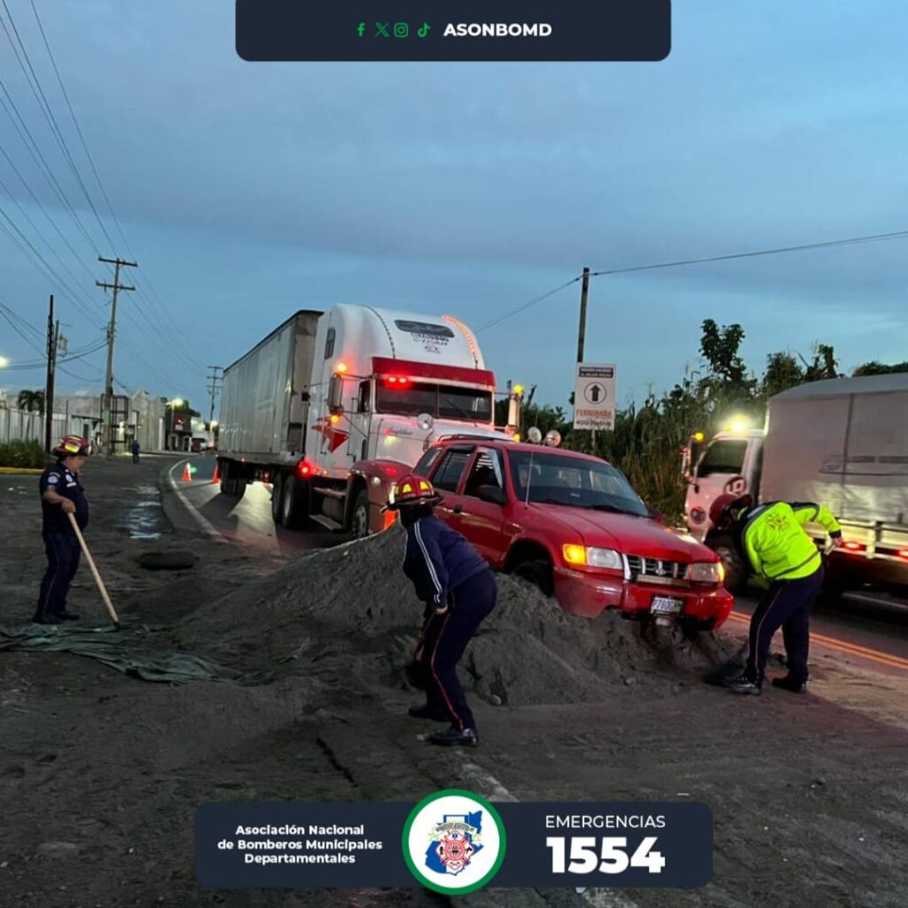 Minutos después otro vehículo liviano sufre un percance en el mismo lugar y quedo atrapado en la arena y solo se reportaron daños materiales. Fueron los propios bomberos que trabajaron por mas de una hora para retirar la arena de la carretera y evitar mas hechos en el lugar.