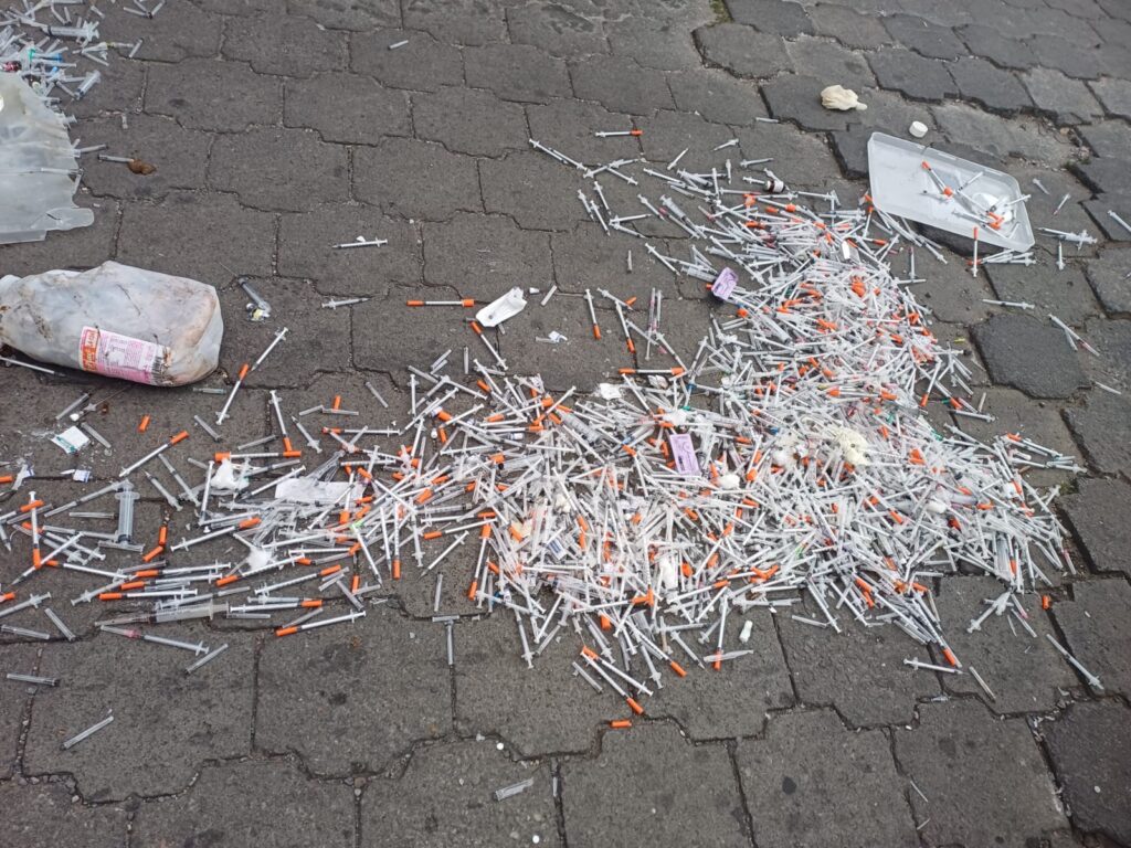 Desechos hospitalarios dejaron tirados por la 3ra avenida de la zona 2 Cantón San Juan de Dios de San Pedro Sacatepéquez San Marcos.