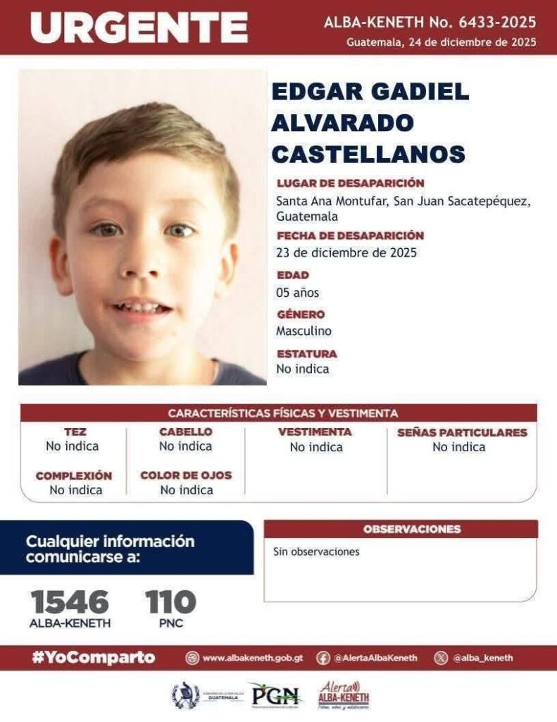 La Fiscalía de la Niñez y Adolescencia en coordinación con la Fiscalía Regional Metropolitana y con acompañamiento de la Policía Nacional Civil logró la captura de Marvin Gonzales Chinchilla de 46 años, presunto responsable de la muerte del niño Edgar Alvarado Castellanos de 5 años.