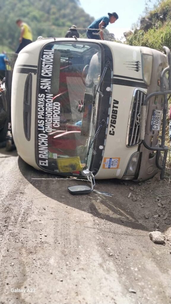 Se registró un hecho de tránsito en la ruta San Cristóbal Verapaz a Quixal, Alta Verapaz, donde un vehículo tipo bus coaster que cubre la microregion 10, volcó sobre la carretera.