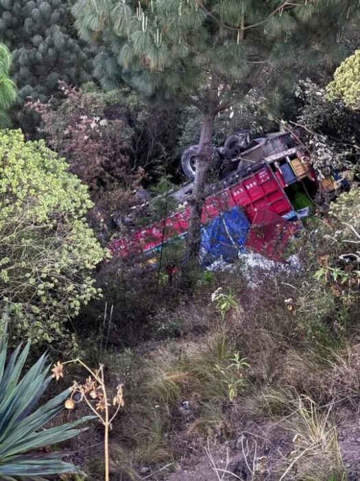 El conductor del transporte pesado perdió el control y cayó en un barranco antes de llegar al mirador de Chiantla.