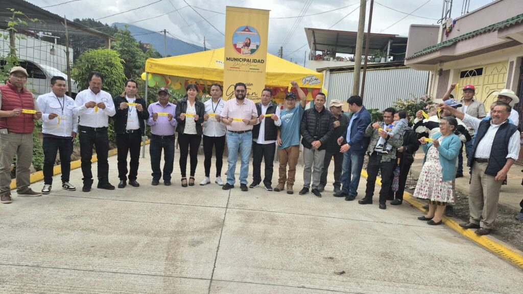 Integrantes de la comuna márquense, encabezada por Otto Castillo Bautista, acompañados de vecinos y autoridades comunitarias, participaron en la inauguración de la primera calle que contará con pavimento.