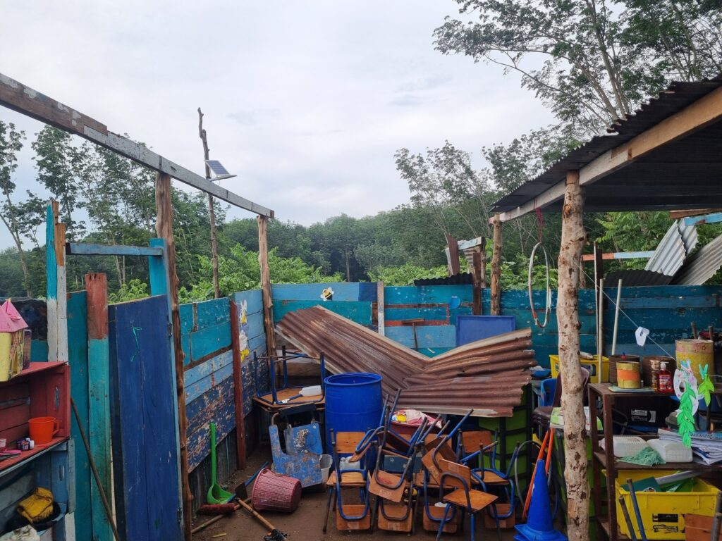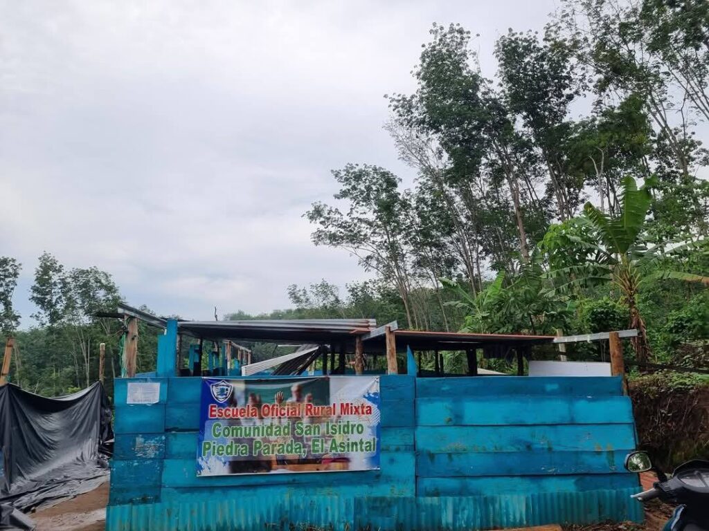 La escuela de San Isidro Piedra Parada, municipio de El Asintal, quedó totalmente destruida. Los escritorios, libros, y demás material didáctico quedaron semi destruidos por la lluvia.