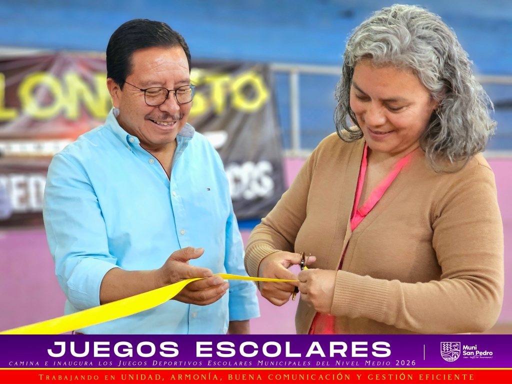 El alcalde municipal de San Pedro Sacatepéquez, Luis Rivera, dio el banderazo de salida y declaró oficialmente inaugurados los Juegos Deportivos Escolares Municipales del Nivel Medio 2026.