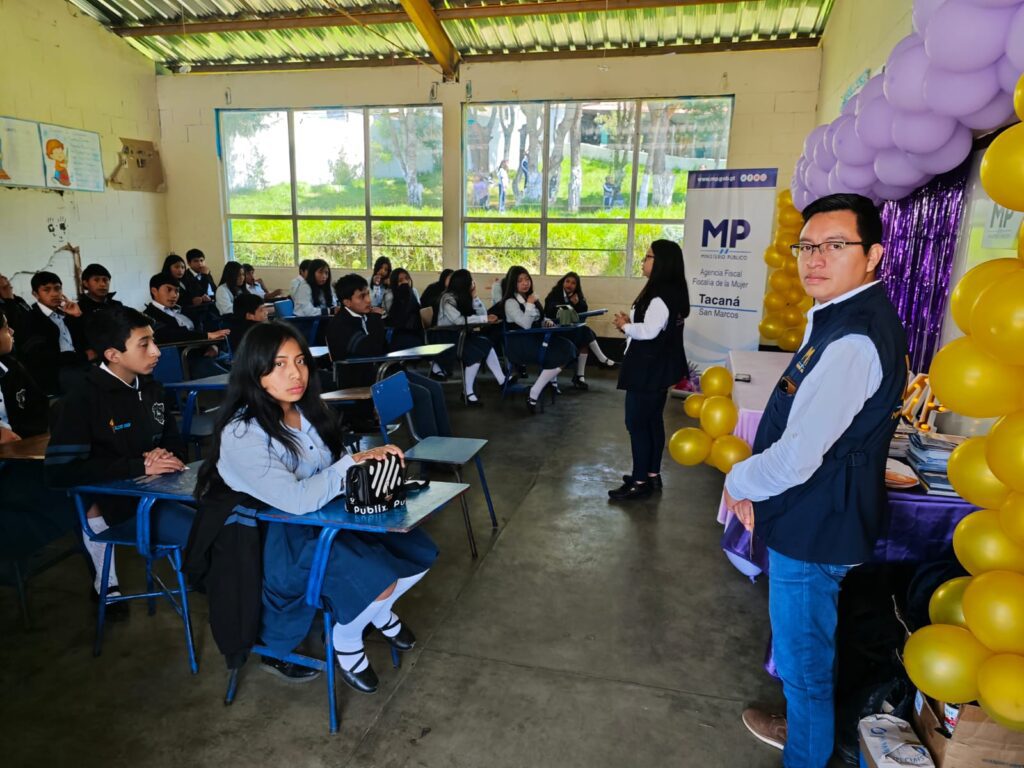 La Fiscalía Municipal de Tacaná, en coordinación con la Fiscal Regional del Ministerio Público, Dra. Miriam Barrios, llevó a cabo una jornada de prevención del delito dirigida a estudiantes de nivel básico y diversificado en ese municipio fronterizo.