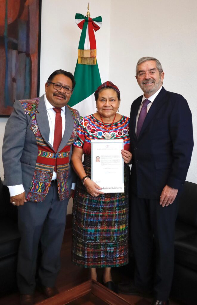La entrega del documento simboliza el reconocimiento del Estado mexicano a una figura emblemática de la lucha indígena en América Latina.