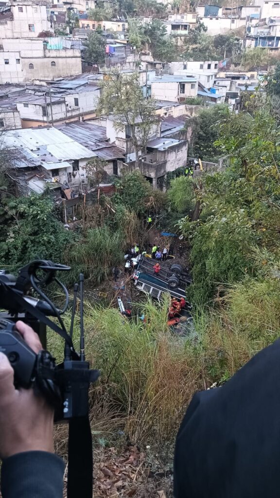 Un trágico percance vial, ocurrió en la bajada de la colonia Atlántida, camino al cementerio Buganvilias, cuando un autobús perdió el control y cayó en un barranco del sector en Calzada La Paz de la zona 6 de la ciudad capital de Guatemala